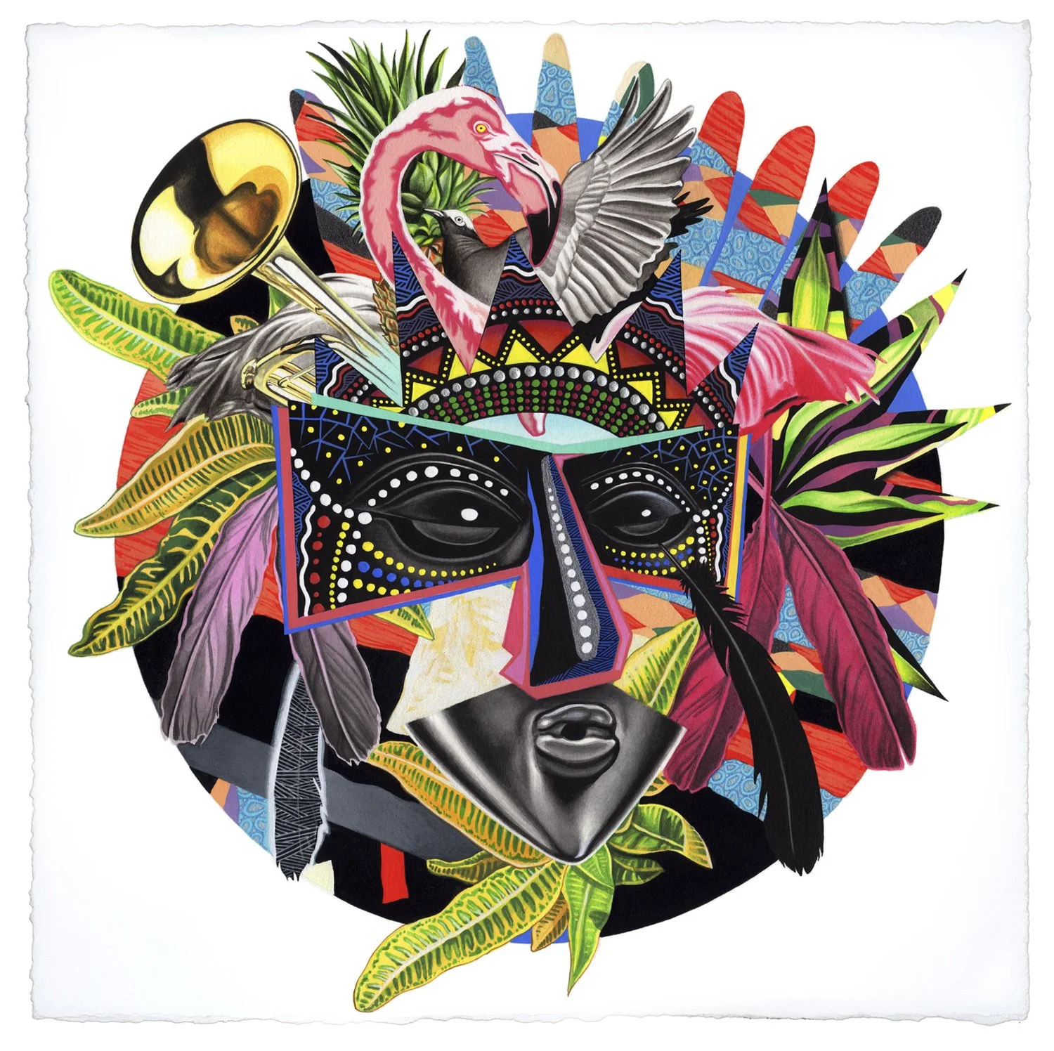 Junkanoo Masquerade - A permanent, site-specific artwork commissioned for the Warwick Hotel Paradise Island (Bahamas). Acrylic & mixed-media on canvas. 132 in. x 66 in. Click here to view the work in situ & to learn more about this special commission